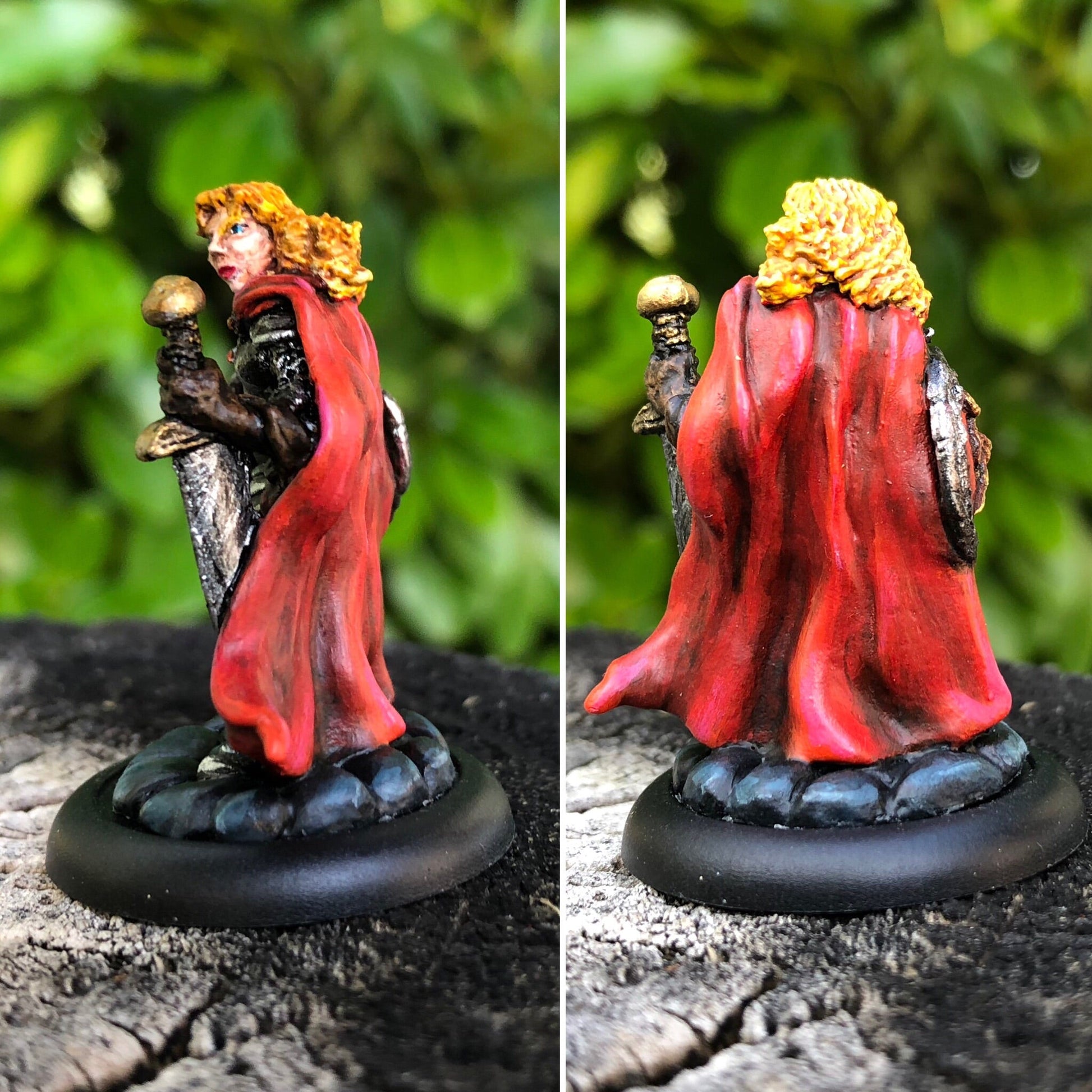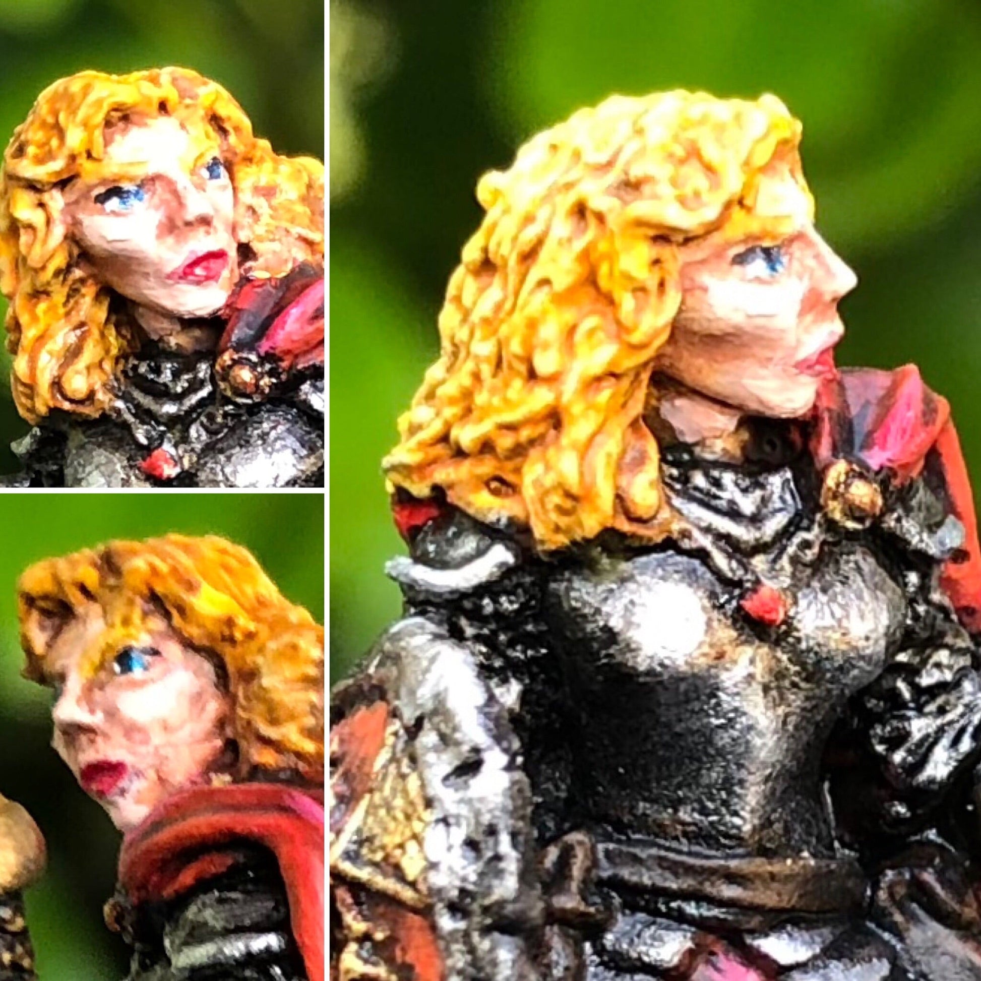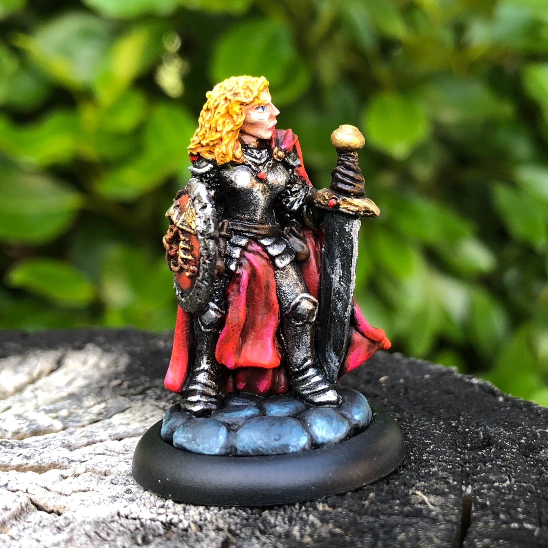 A young runaway bride from a deranged robber baron, Nika sought refuge in the temple of The Justicebringer. There she hurriedly knelt and prayed. When the evil groom and his retinue arrived, a glowing sword suddenly appeared in her hand. She put it to use with brutal effect, slaying them to a man. Dame Nika the Justicar was born, to seek out vileness and bring doom upon the wicked.