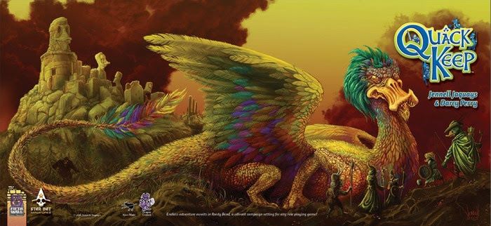 Quack Keep - a collaboration between Jennell Jaquays (5th Wall Games & Miniatures) and Darcy Perry (Star Hat Miniatures) - inspired by classic game adventure modules of the past but written to be more approachable for a new generation of role-players and workable with a wide range of game rules thanks to the 5th Wall Generic Rank System. It even comes with a fold-out GM screen as a cover!