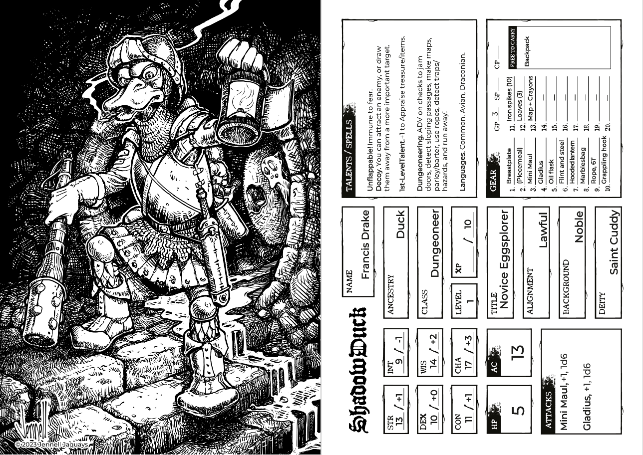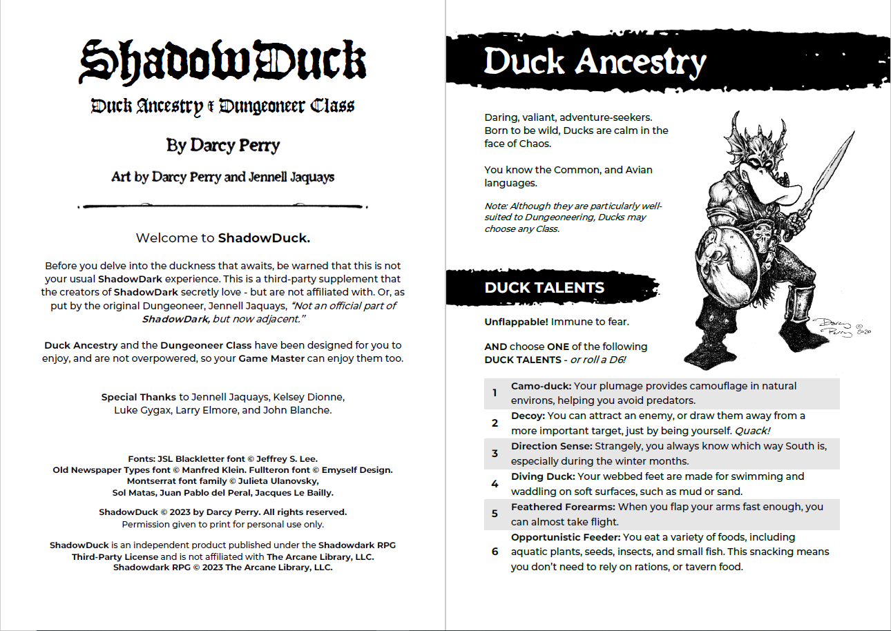 ShadowDark Duck Ancestry & Dungeoneer Class